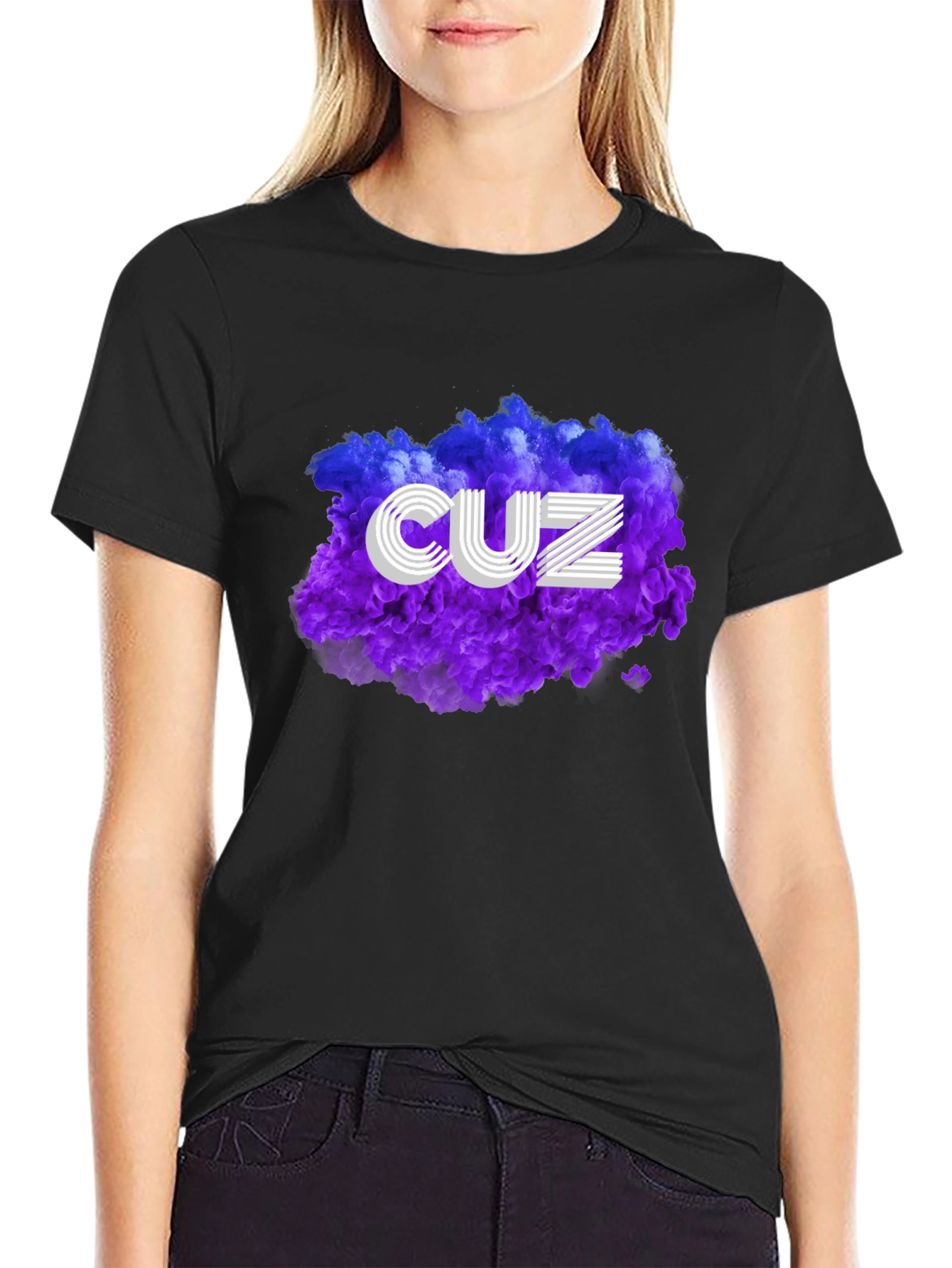 Elevate your casual wardrobe with this eye-catching CUZ T-shirt! Featuring a bold CUZ graphic set against a vibrant smoke cloud in striking shades of purple and blue, this shirt is sure to turn heads. The crisp white letters stand out, offering a clean and modern aesthetic. Perfect for expressing your unique style. Comfortable and versatile, it's an excellent choice for everyday wear, concerts, or casual gatherings. Show your style and grab one today!