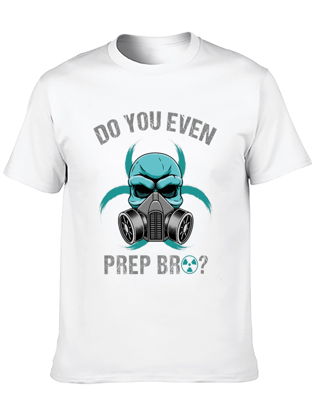 Show off your preparedness with this unique graphic tee! This black t-shirt features a bold design of a skull wearing a gas mask with a biohazard symbol and the words "DO YOU EVEN PREP BRO?". This eye-catching design is perfect for preppers, survivalists, and anyone who wants to make a statement. Made from a comfortable and durable fabric, this tee is ideal for everyday wear or your next outdoor adventure. Available in various sizes, this graphic tee is a must-have for your wardrobe. Be prepared and stylish!