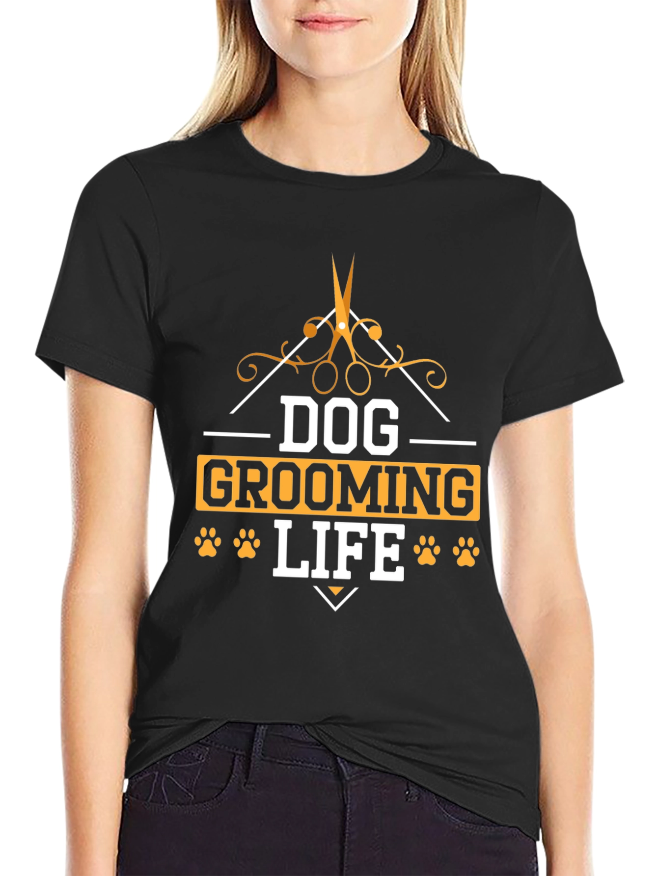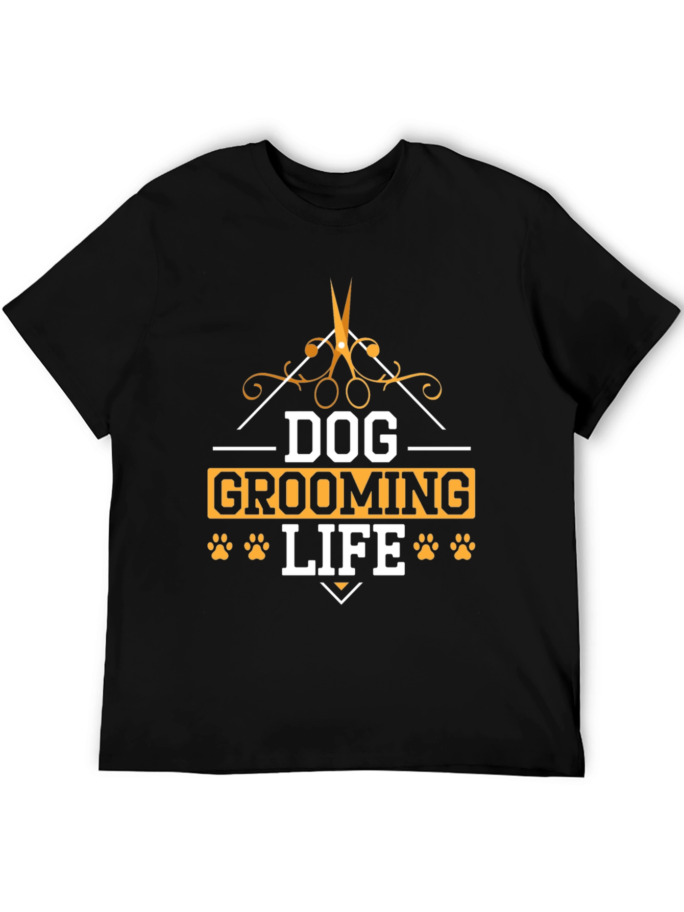 Show your love for dogs and grooming with this stylish black t-shirt. The design features bold lettering with the phrase "Dog Grooming Life", stylized graphics and paw print accents. This classic fit tee is comfortable for everyday wear. Made from soft fabric, it's perfect for dog groomers, pet owners, or anyone who loves animals. Wear it while grooming, walking your dog, or just relaxing at home. A great gift for the dog lover in your life!
