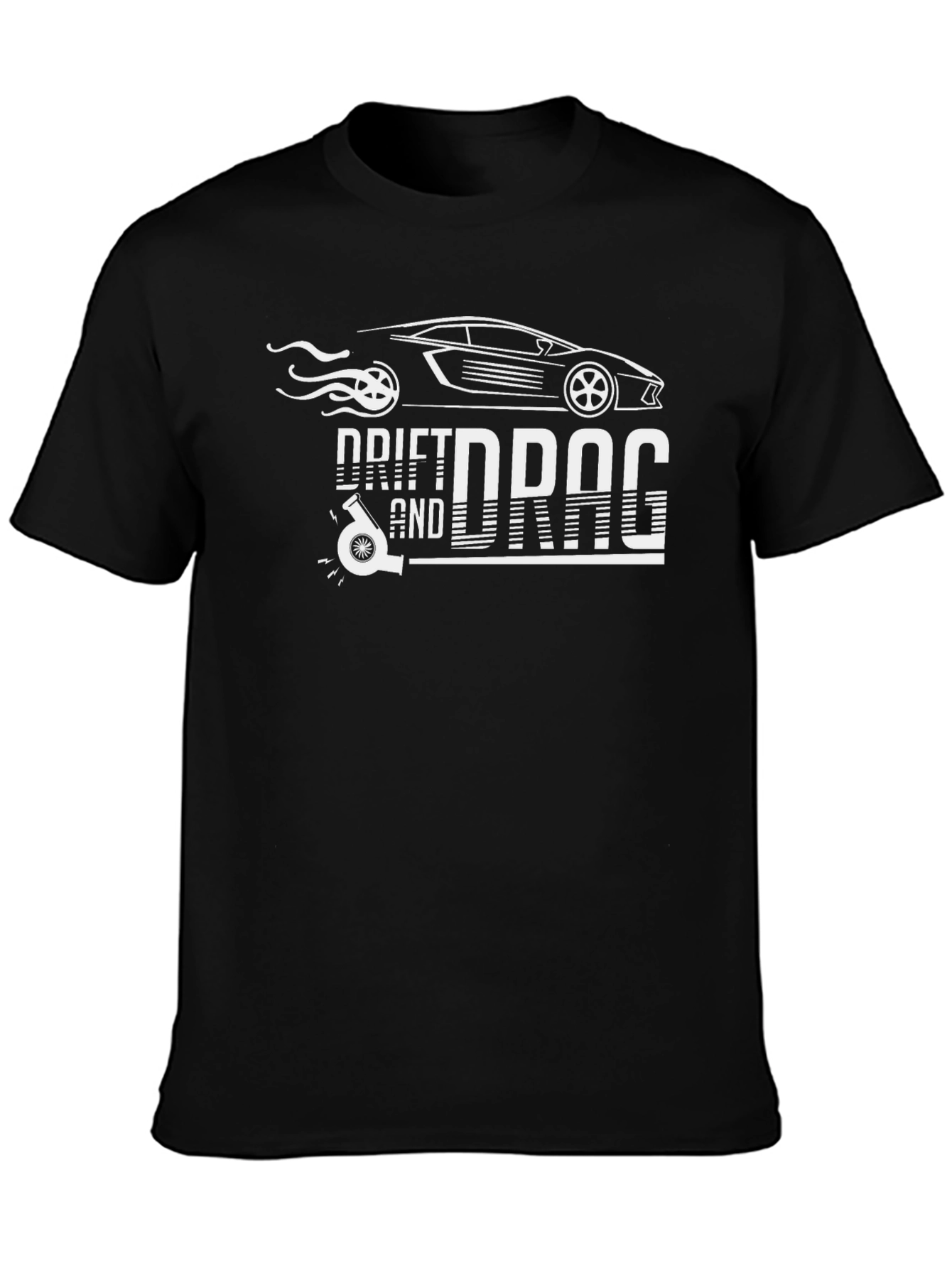 Showcase your love for motorsports with this sleek black t-shirt. Featuring a striking graphic design of a stylized sports car with the words "Drift and Drag," this tee is perfect for car enthusiasts. The design also incorporates a turbocharger illustration, adding to its cool factor. Made from a comfortable material, this shirt is ideal for casual wear, car meets, or simply expressing your passion for racing. Grab yours today and rev up your style!