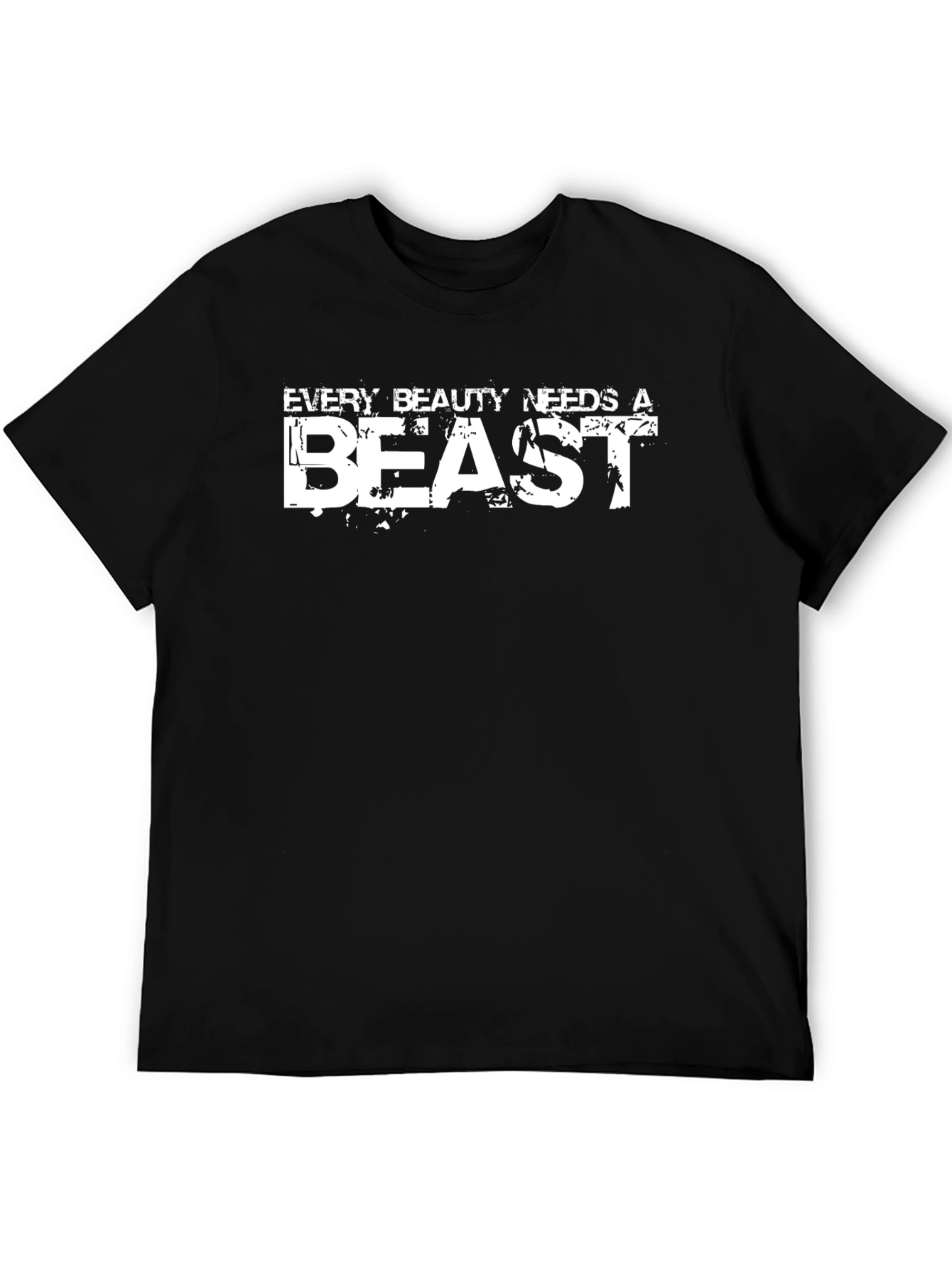 Show off your wild side with this eye-catching black t-shirt. Featuring a bold, distressed graphic print that reads "Every Beauty Needs A Beast", this tee makes a statement. The relaxed fit and classic crew neck offer all-day comfort, while the soft, breathable fabric ensures durability. Perfect for casual outings, gym sessions, or lounging at home, this versatile shirt adds an edgy touch to any outfit. Pair it with jeans, shorts, or joggers for an effortlessly cool look. Embrace your inner beast and grab this unique tee today!