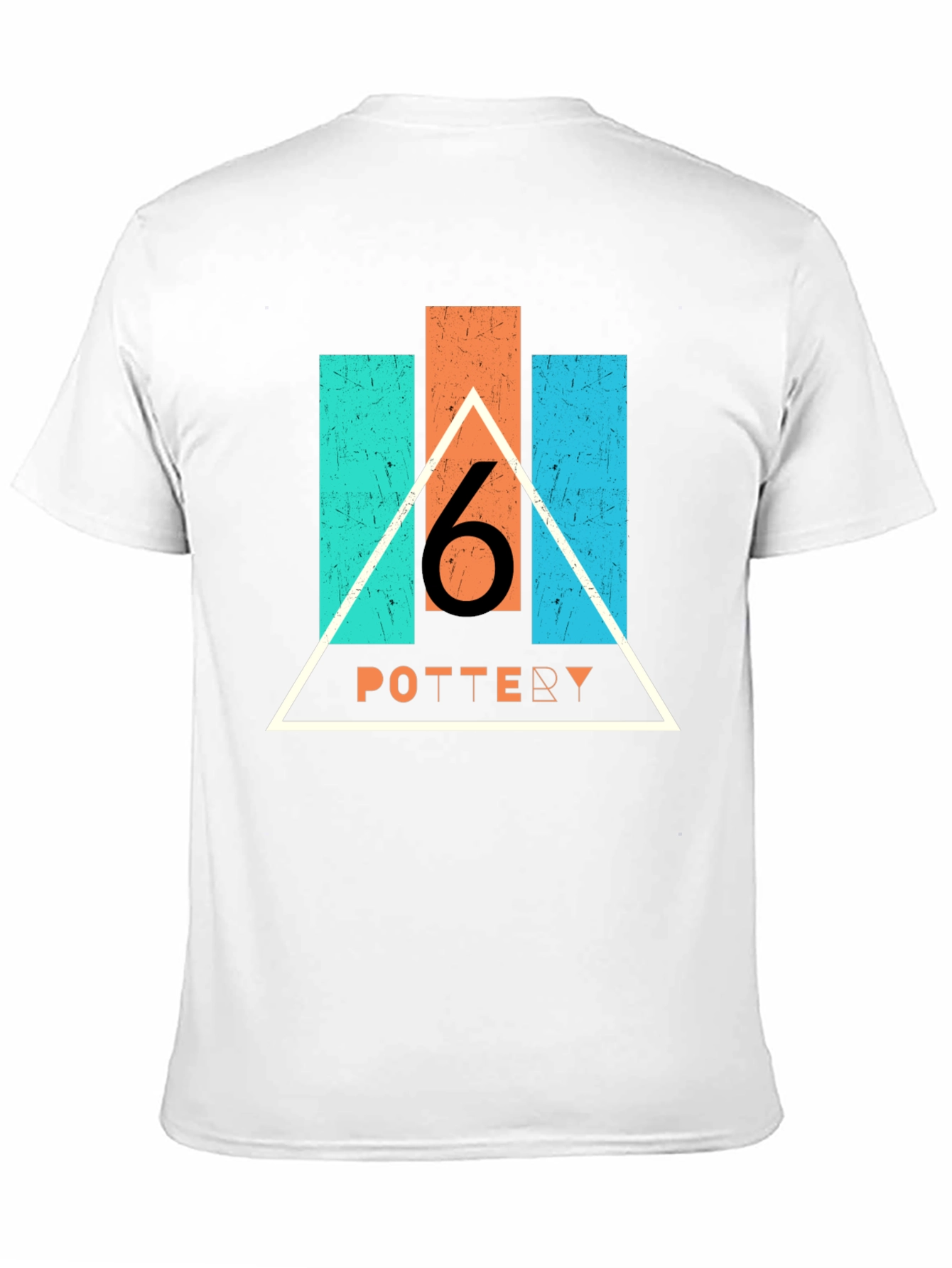 Showcase your love for pottery with this unique graphic t-shirt. This stylish black tee features a bold design with teal and orange geometric shapes, with "6 POTTERY" printed in a eye-catching orange font. The design is framed by a crisp white triangle, giving it a modern and artistic edge. Made from a soft, comfortable fabric, this t-shirt is perfect for casual wear, pottery classes, or as a statement piece in your wardrobe. Express your passion for the ceramic arts with this standout shirt. A perfect gift for the pottery enthusiast!